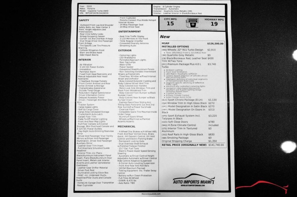 THIS STUNNING 2020 CAYENNE TURBO COMES WITH A TWIN TURBOCHARGED 4.0L V8 ENGINE THAT PRODUCES 541 POUNDING HORSEPOWER AND COMES WITH ALL THE RIGHT EQUIPMENT INCLUDING…….